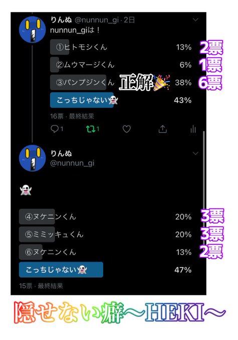 しおうさんナイズお疲れ様でした!私のデザインは③の★🎃さんでした〜!やっぱり自分のアンケだと結構バレてるけど主催さんのアンケ見る限り結構撹乱できてたみたいでニッコリ あと自分の赤っ恥予想シートです 切腹します https://t.co/WKFtSpYvpN