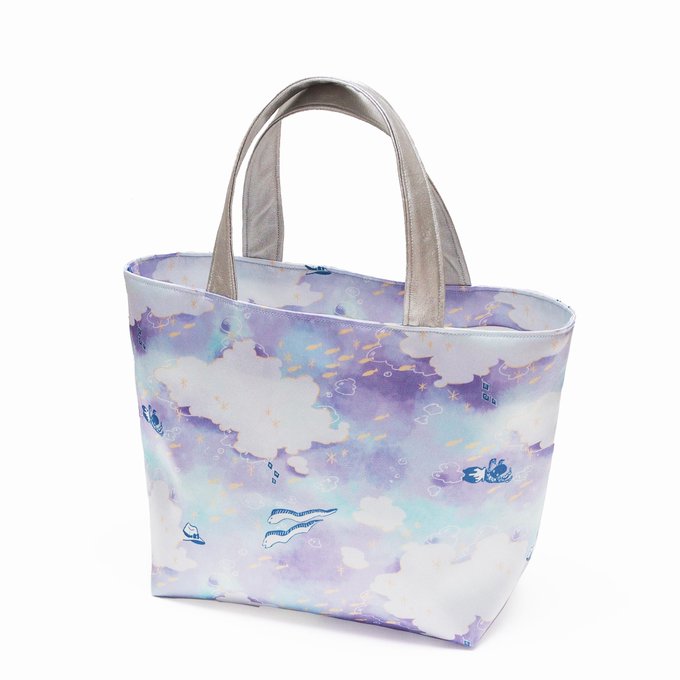 とっても夏っぽい海トートバッグができました!持ち手は銀色!生地もほんのり光沢感あってキラキラしてます #twstファンアート