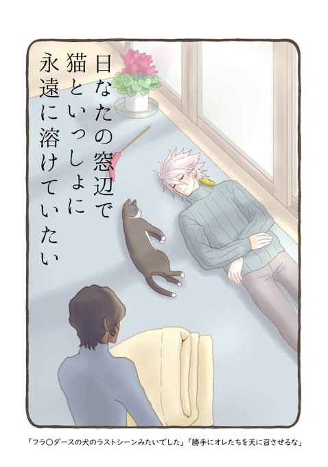 フロマージュさんで春コミ新刊の販売が始まりましたのでよろしくお願いいたします 現パロほのぼのジュナカルが猫を飼いポエムを詠む本です