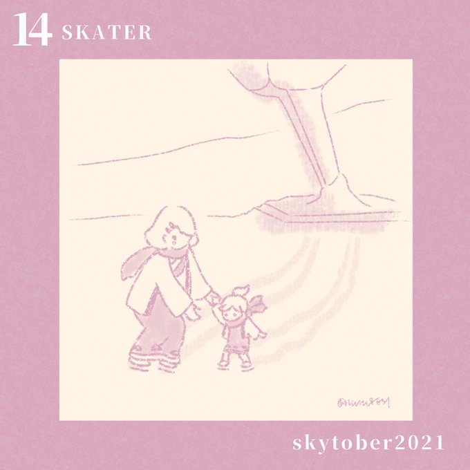 #skytober2021 #thatskygame 14.スケーター ⛸初めての思い出 この親子あまりに寒そうなんで半纏を着せてしまいました…