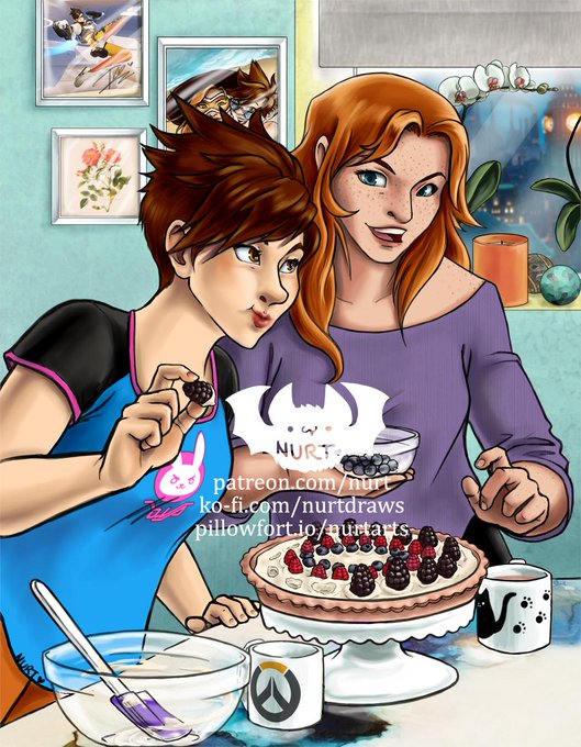#nurtarts #overwatchfanart #zarya #brigitte #tracer #lenaxemily #digitalart #overcookedzine #fruittart #beetlemonade #illustration #artistsontwitter