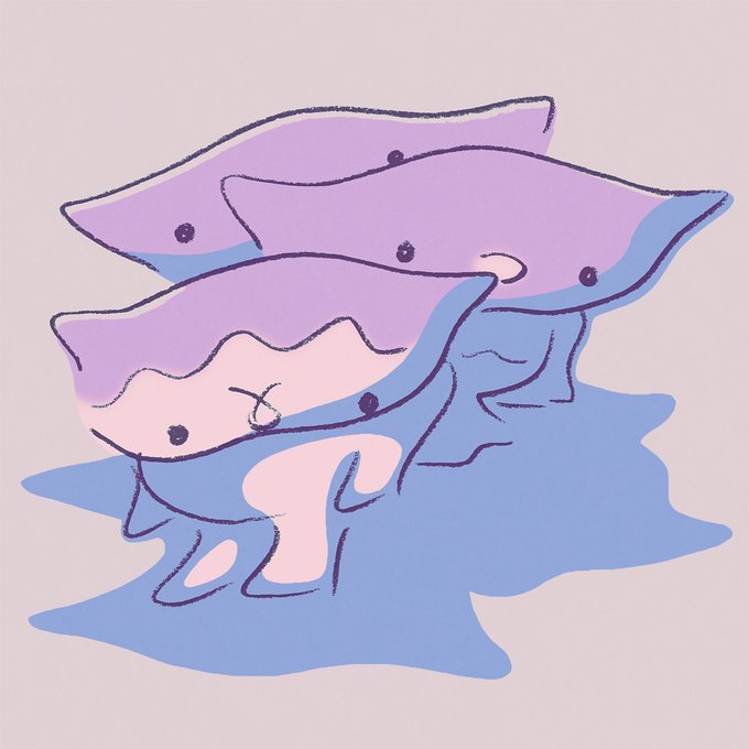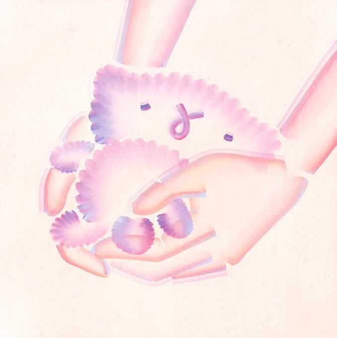 『スゥスゥ』は元々絵の具で描いた原画作品があるのですが、ラフで描いた線もかわいかったので線画でも仕上げてみました。あたたかな手のひらに安心しきって眠りはじめてしまう生き物です。。。💤