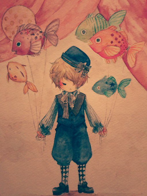 水彩とボールペンでお絵描きしてます。