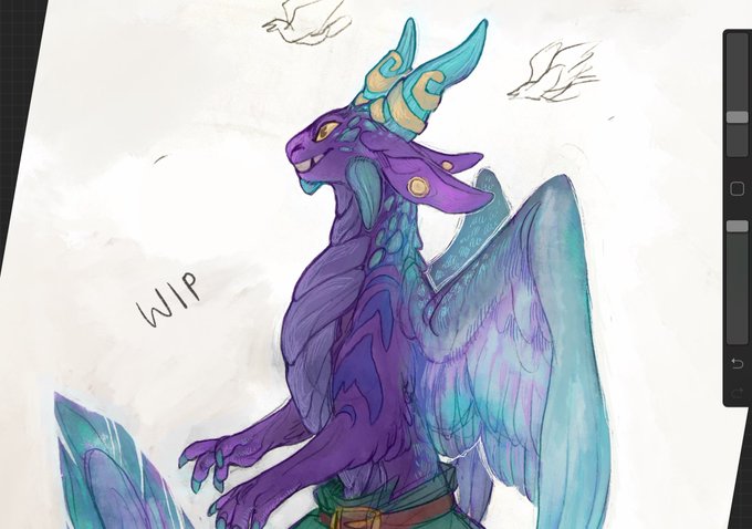 uhh nameless spyro oc wip (traditional lines + digital colors) started as magic crafter but i think he might be a dream weaver. probably hangs out with sheep and birds