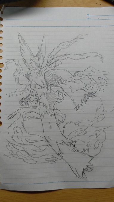 ポケットモンスター 模写/想像 今回は両方出来栄えが酷い……w 1番好きなポケモンなのに想像のメガバシャ、ただのバシャーモなの草