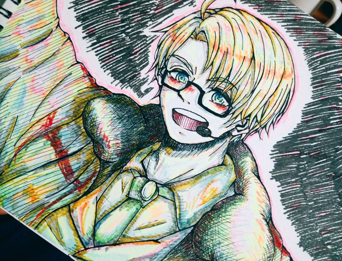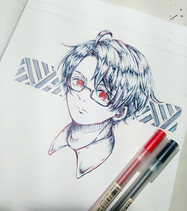 落書き~。 目が痛い。