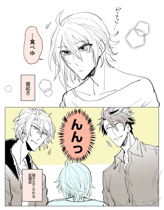 飲み会でグラビアアイドルごっこをするつなしとカメラマン役のモモとそれを楽しむ大和と止めようとする楽(お題箱)