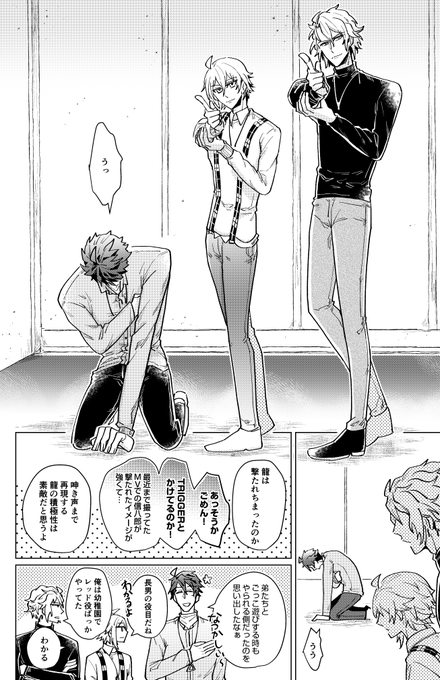 2/16新刊③サンプル2 クレセントウルフ舞台裏TRIGGER本 八乙女贔屓のサンプルチョイスになってしまった…のでTRIGGERわちゃ漫画の方