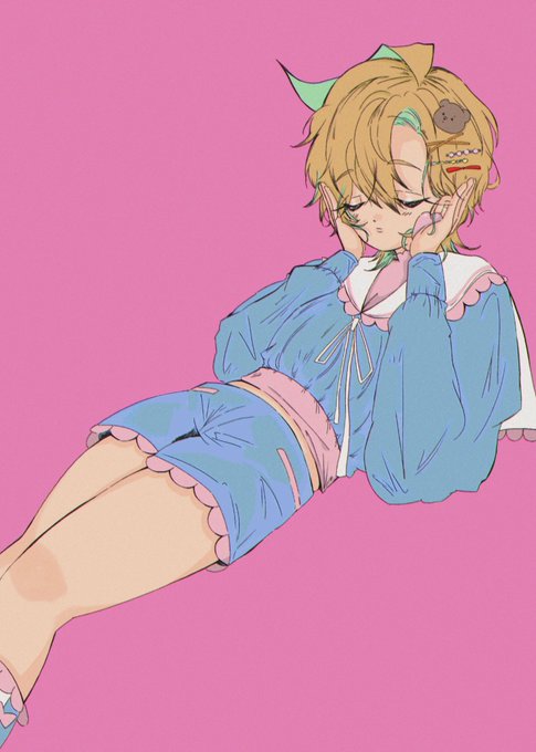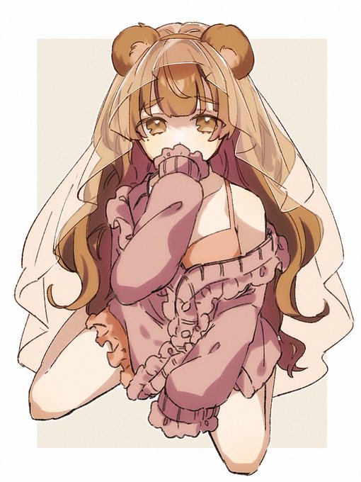 ましゅさん(@masyu_ut)とキャラ被りデザインゲームで遊んでもらいました。 ①癖毛②垂れ眉③オーバーサイズの服④フリル⑤短パン⑥テディベア (←ましゅさん)(私→)
