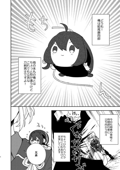 【C92】新刊サンプル | にゃも https://t.co/9TA0yQ2PbQ 夏コミ新刊サンプルあげました~^^なぜか普通にもちの姿で本丸になじむ鯰尾(もち)と骨喰と鯰尾(人型)のお話です。