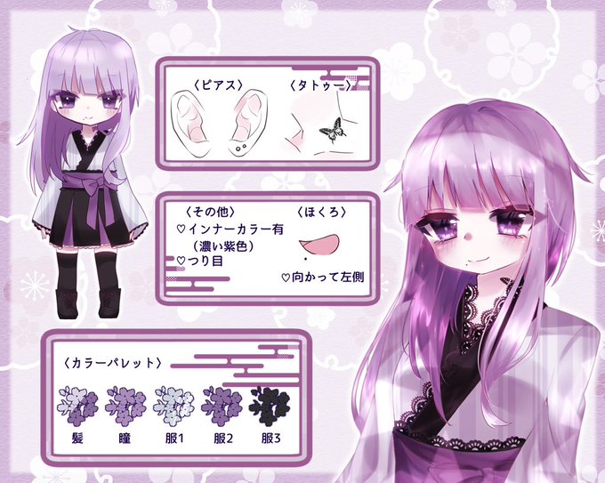 ♡紫のインナーカラー、青紫の着物