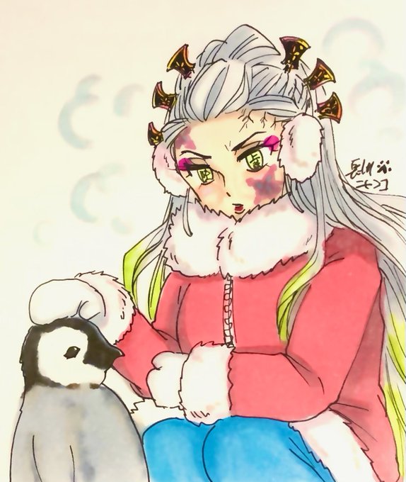 堕姫と子ペンギン🧊 可愛いから持って帰りたいと 兄に強請りそう…。 #南極の日
