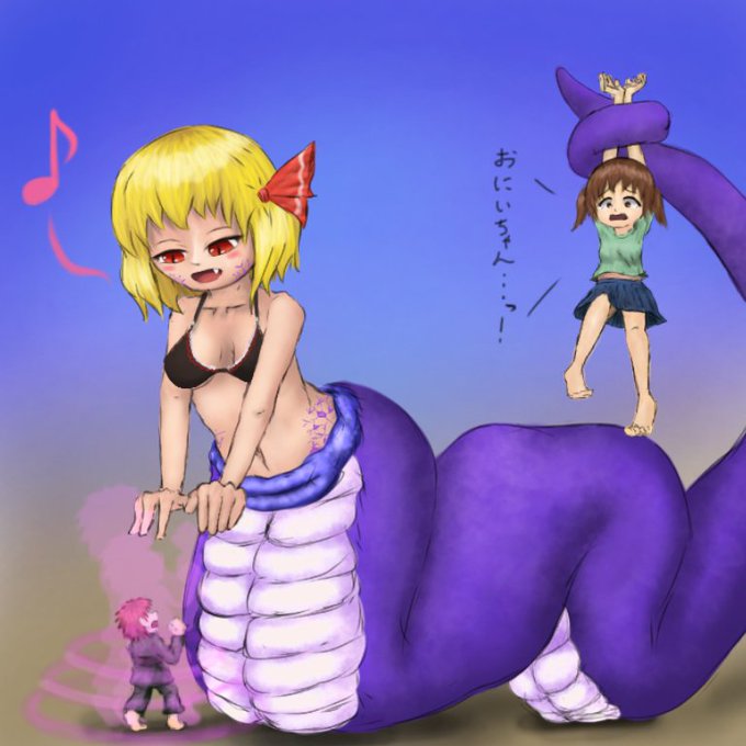 残りは二人、お兄ちゃんと妹ちゃんの兄弟だけになっちゃいましたね😋 ルーミアちゃんは魔法でお兄ちゃんを小さくしてしまい……