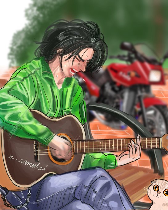 #バイク乗りと繋がりたい #イラスト #ギター弾き語り #絵柄好みって人にフォローされたい