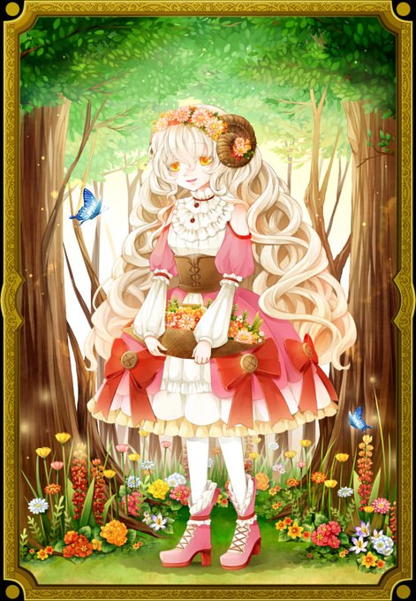 渦巻き角の少女 ~メリサ~ (過去に描いた『角人の森』の立ち絵をデフォルメ化) #角人の森