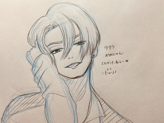 深夜の落書き_φ(・_・)全然絵描けてない…頑張ろうー 少クラかめにゃんエロかっこよかったーさすがジャニーズのセックスシンボルだね…!!という落書き。