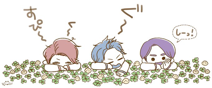 この前のゆっち絵のやつ。春って日差しも気温も丁度良く暖かいから眠くなっちゃうよね、という絵を描きたかったの。 クローバーの所に金平糖みたいなの落ちてますが、アレです、シロツメクサです。画力…!!笑