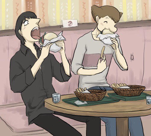 【ATB 】モスのマルデピザバーガー美味しかったので2人にも食べて貰った😊店内に居座って絵を描く私に冷房当てすぎやろと思っていたけどモスに2時間近くいたよ。そりゃ当てるわw