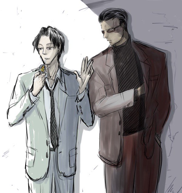 【王ヴァイ】若かりし蘇芳とカオ…この2人の過去も読みたいんだよな〜カオと音信不通になる時の蘇芳の演出良かった…広島伊達会カッコいいよ…と、5月7日記念日に敵対キャラを描く私😇