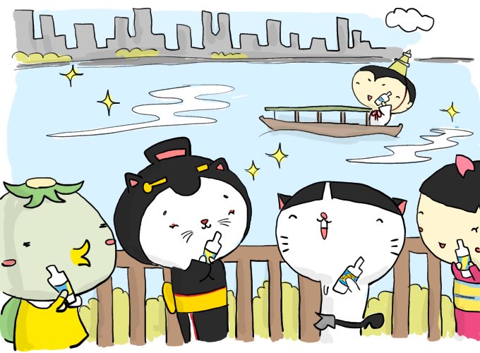 ( ・∇・)みんなも隅田川眺めながら向嶋言問姐さんのサイダー飲んで涼むにゃー