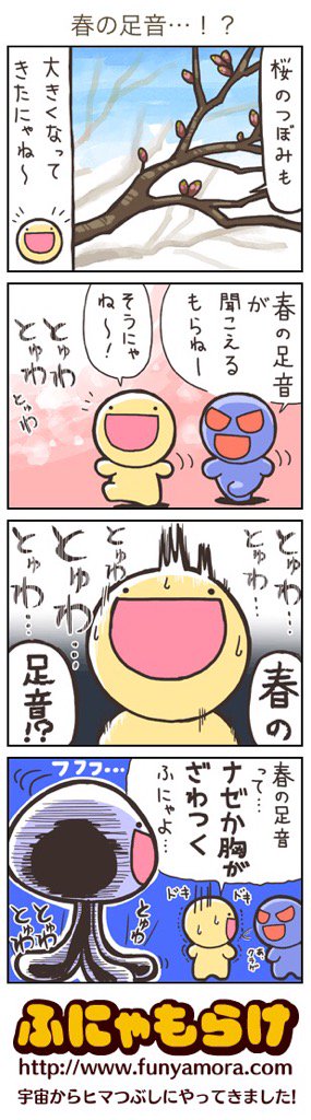 今日のふにゃもらけ4コマ『春の足音…!?』 https://t.co/TrKqLr1Oi4 #ふにゃもらけ