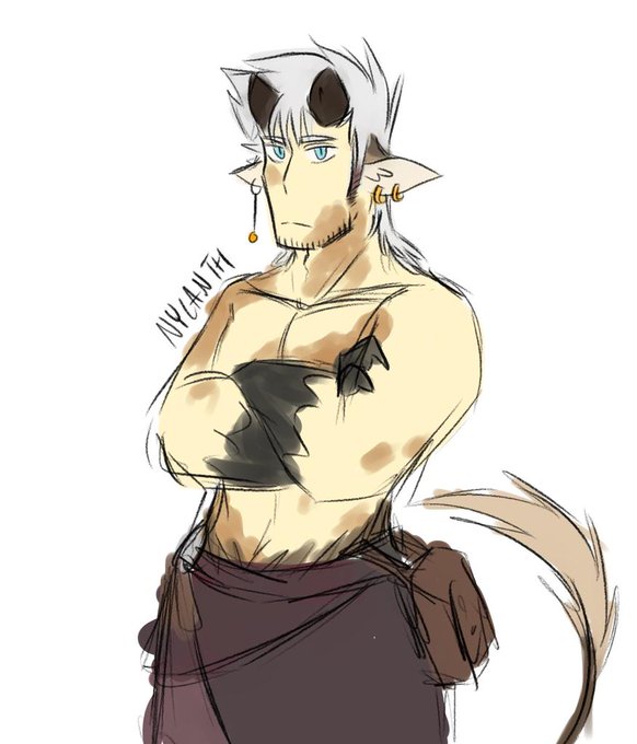 my brain is large because i just figured out the solution to my problem of covering razimyr’s back and titties. it was right there all along. he can wear light and airy while also covering his Mark of Favor and also...rogue theme...