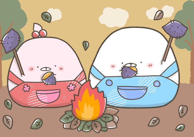 今日は2人で焼き芋ホクホク🍠🍂 #イラスト #お絵描き #一日一絵 #まるにょん