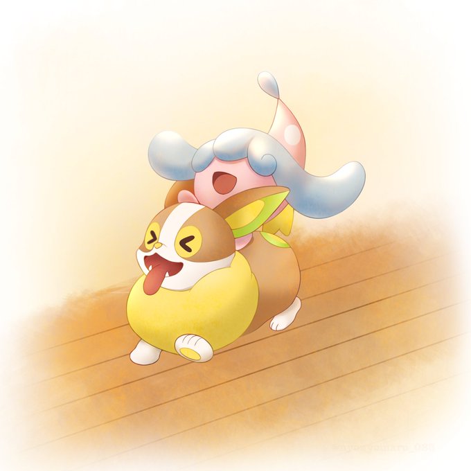 母さんのワンパチとミブリムが一緒に遊んでた!!珍しい!楽しそう! #ポケモンと生活