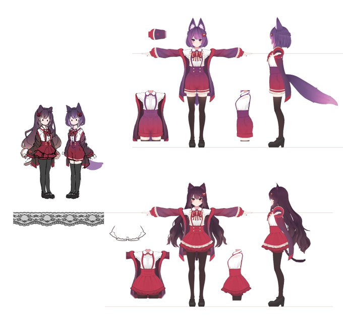 原画とテクスチャは私が、モデリングとリギングはいさが担当して、一緒に服を作りました! 3D化が完璧で本当に尊敬…ありがとうです🥰楽しい作業でした💕