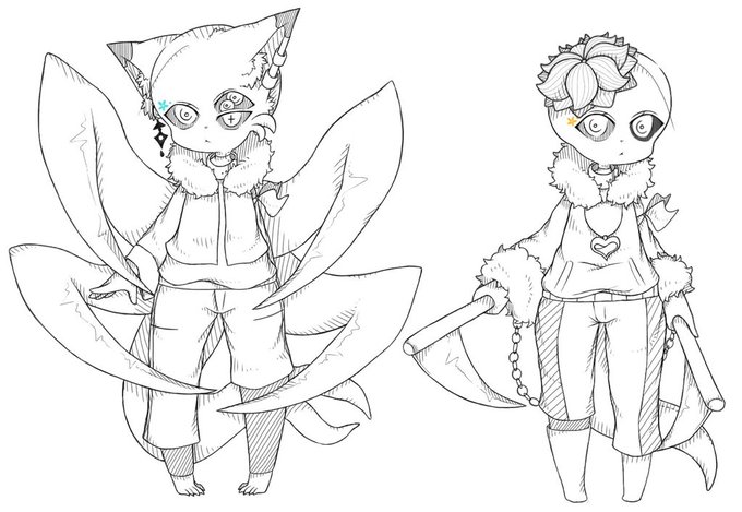 過去絵〜 1枚目からバドエンジニアとジニと知り合い フィト シバリ この中で一番古いイラストは4枚目のシバリ