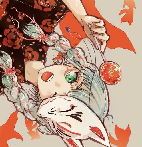 Candy Apple🍎 りんご飴むずかし…今度リベンジ💪 今日は創作絵🙌(お面が描きたかった) #創作キャラ