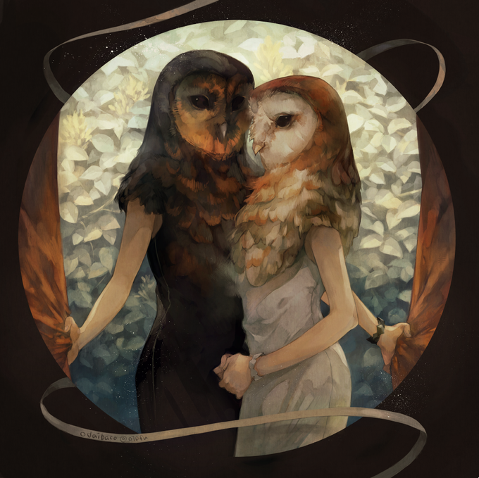 >白と黒、2匹のメンフクロウ 人型にしてみました。お題ありがとうございます!#odaibako