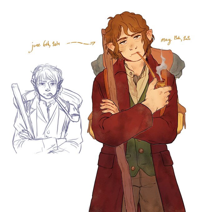 first post here, I'll share something from my patreon! this was originally an artist collaboration/art switch meme that I volunteered to draw bilbo in!