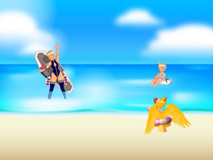 きな子とひよ子と雅日さんの3人で遊んでた浜辺がこんなに賑やかになりましたヽ(*´∀`*)ノ …あれ?ひよ子は?(´ºωº`) #エレクトリアコード #EC海水浴場 https://t.co/nXlFuhYzsP