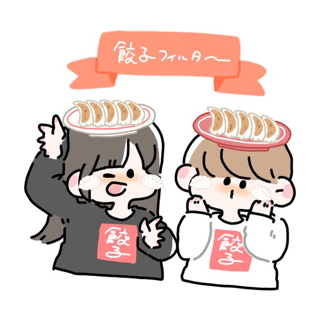 インスタでせっせと作っているエフェクトの絵!! 餃子食べいってお友達と頭とほっぺたに餃子のせてねえ、なんて楽しいの、、という気持ちなのでよろしかったら使ってね