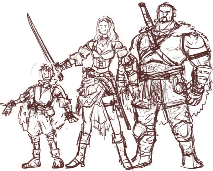 ファンタジー系のOCでヒゲマッチョと赤毛の少年とセットの女子。力でゴリ押しする女戦士なイメージ。このキャラもお顔も含めてデザイン練り練りしないとね。 https://t.co/JfmuXA1fec