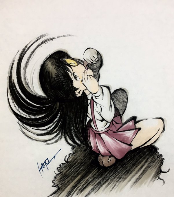 まぼろしの汽車から… 墨絵「ねこ娘」 #ゲゲゲ忌2021 #ゲゲゲの鬼太郎 #墨絵