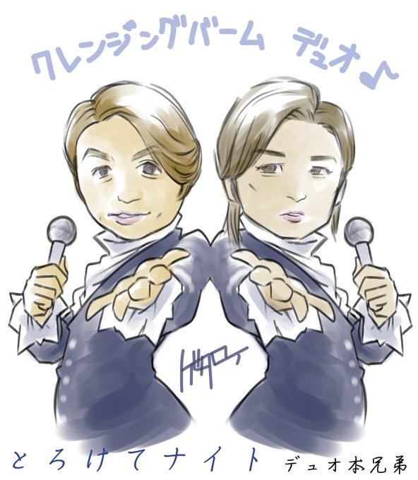 お肌の調子はデュオですか~♪ このCM流れ過ぎじゃないですか?w🙄 頭から離れなくなってしまったww😳 #kinkikds #堂本剛 #堂本光一 #デュオ本兄弟 #似顔絵