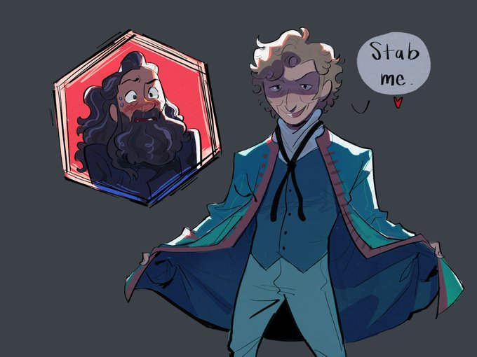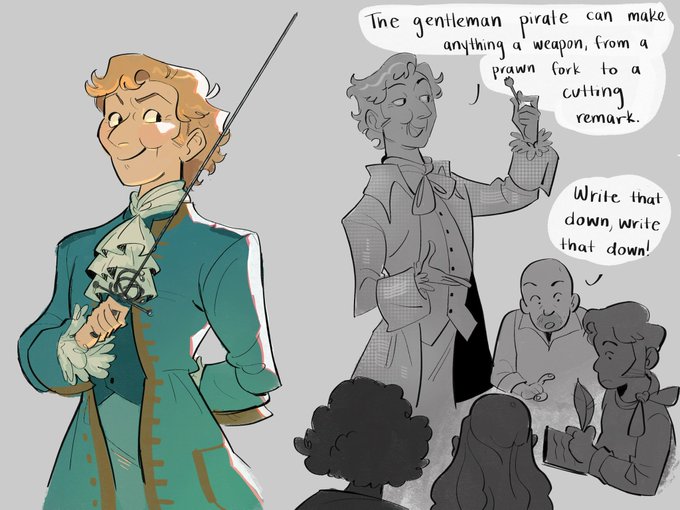 More ofmd doodles - a silly role reversal au where the gentleman pirate is world renown and Blackbeard is just starting to make his name