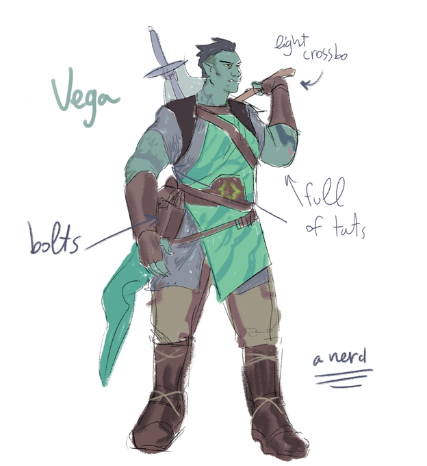 My v cute OC Vega I made for a friend's homebrew fighter subclass! She has floaty weapons and she also died today (???