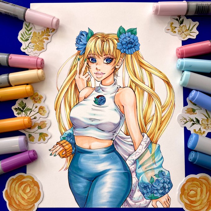 💙 BLUE GIRLS WIP 💙 doing an artist support artshare live on stream today!! 💖 live now 💖 link below!