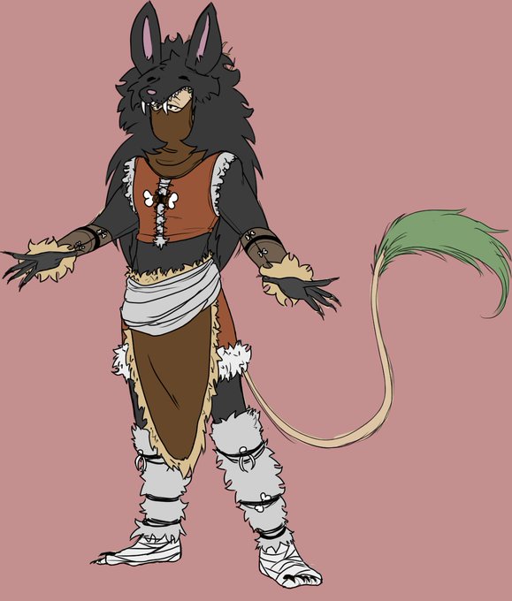 winter outfit......... his gloves and bandages on his feet have holes in them for his claws to stick out of... (imagine the white/grey spots are just a red tint bc theres so way theyd ever be this clean again)