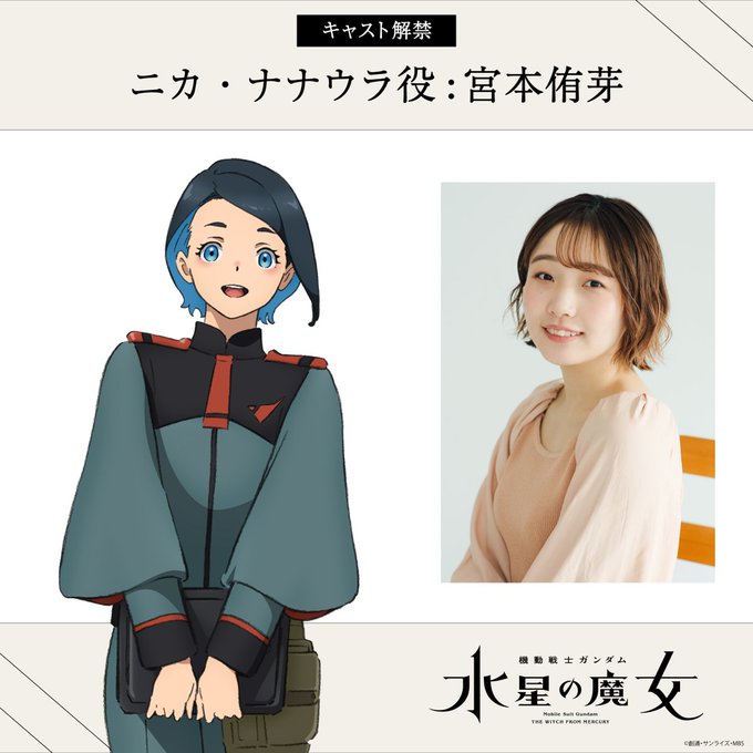 メカニックのニカ・ナナウラ、CVが宮本侑芽ってだけで期待しちゃう。 まあ、メカニックだから脇役なんだろうけど、CV 宮本侑芽 だからね? #水星の魔女 #機動戦士ガンダム水星の魔女