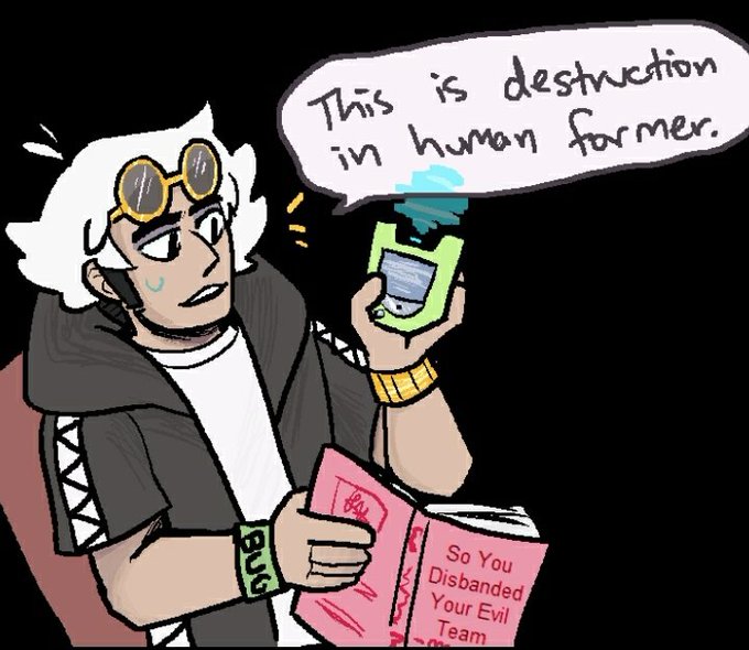 listen I'm just saying that maxie writing a book called "so you disbanded your evil team" and having a bad review by archie on the cover, with postgame guzma nonchalantly reading it, is one of the funniest things I ever drew 😂