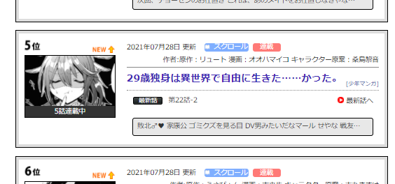ComicWalkerデイリーランキング1位・ニコニコ静画(マンガ)デイリーランキング [少年]6位ランクイン感謝ですーっ🙇💦