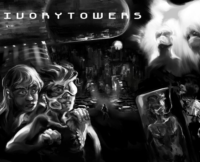 Going to use this twitter both as a devblog for #IvoryTowers and general art but here's my first bit of key art for my current VN project.