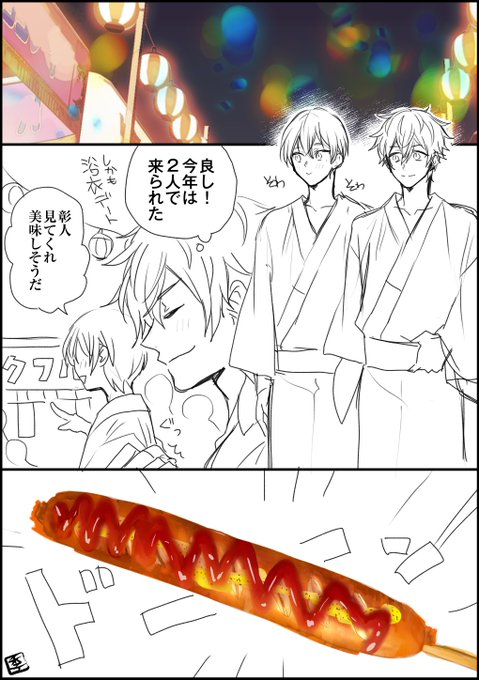 🎆👘🎇 #彰冬 > リクエスト大丈夫でしょうか…? 花火大会に来た彰冬で、冬弥のはだけてしまった浴衣を目を逸らしつつも器用に着付けてあげる… #odaibako_oekaki_liko https://t.co/HKizRzxlWH