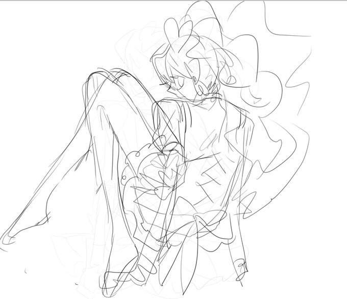 #このタグを見た人はラフ画とその完成絵を見せる 人体の練習が必要