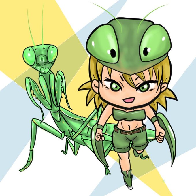 生き物×女の子 カマキリちゃん #カマキリ #女の子イラスト #イラスト好きさんと繋がりたい