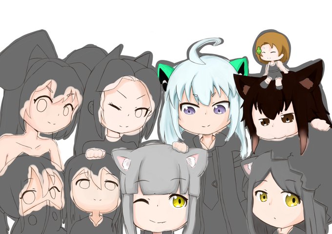 オリキャラ集合できました! うちの子、たけのこさん、空さん、ROTOさん、禍斗さん、しろぎさん、ブラックさん、たまごやき、杏梨さんとこの子を描かせて頂きました 皆きゃわいい🥰 #らまそい #ともつる